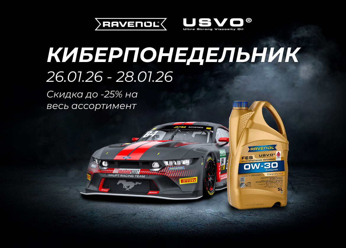 Всего три дня: с 26 по 28 января 2026 года ВЫ сможете приобретать продукцию RAVENOL® с хорошими скидками. Мы представляем ВАМ специальную акционную канистру 8 литров! Купить ее ВЫ можете по цене обычной 4-литровой. Таким образом, скидка на масло в этой канистре составит 50%!!!